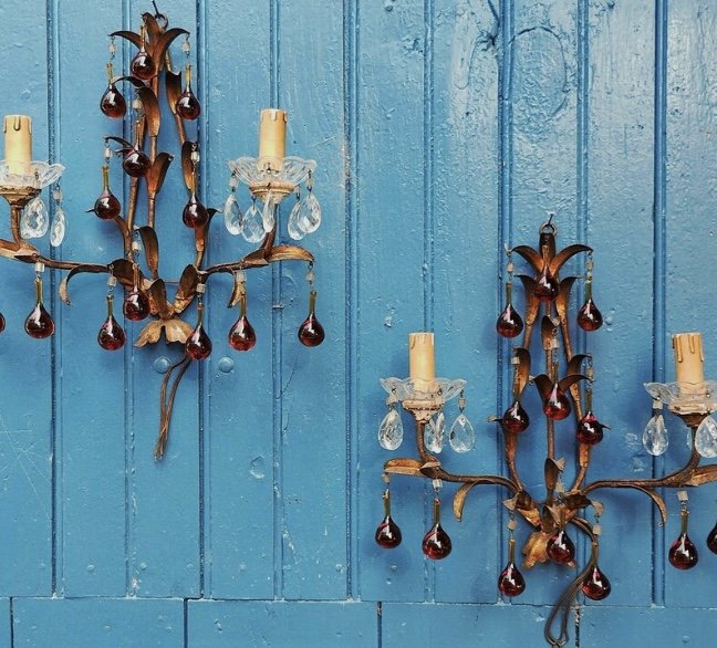 Vintage Florentine Wall Sconces, Gilt & Tole c.1950