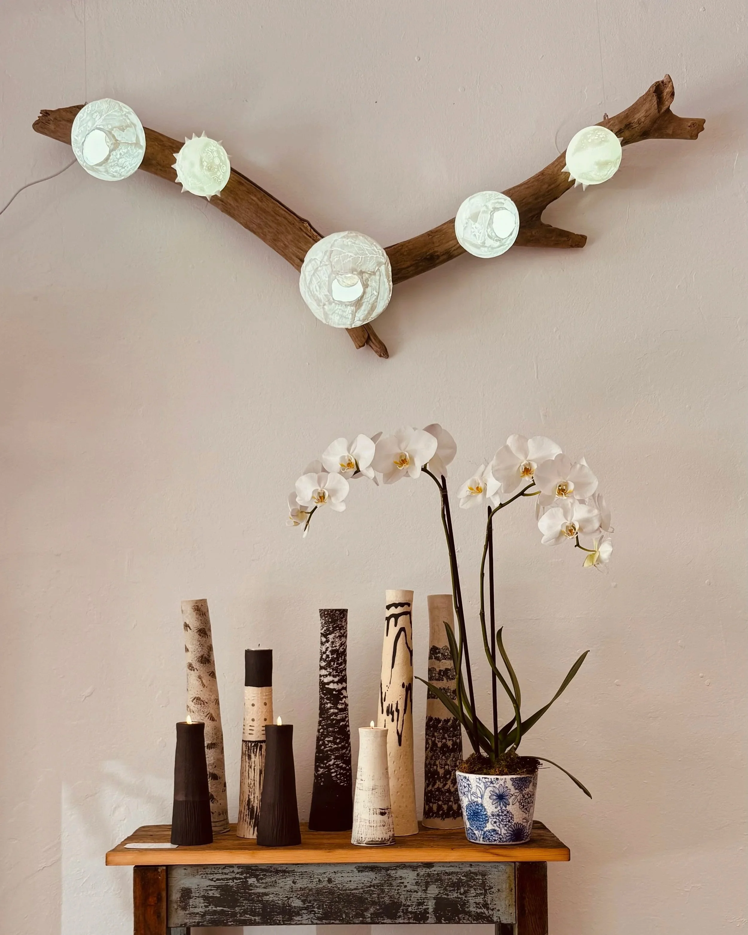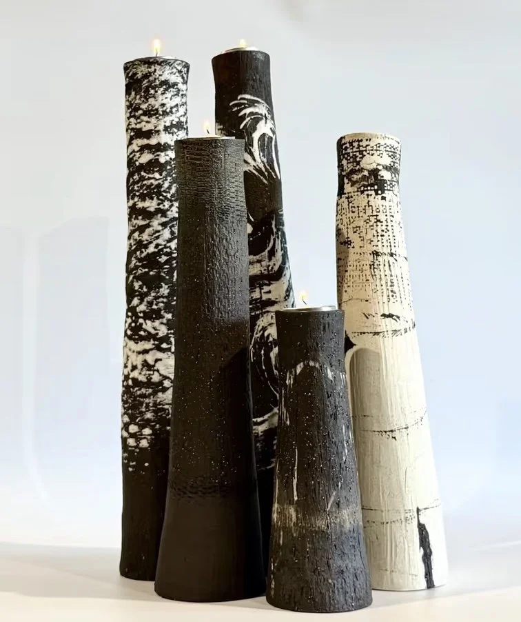 Her pieces feel simultaneously raw and resolved: earthy surfaces, quiet graphic markings, and silhouettes that hold space like small monuments. Designed to be lived with, her work brings a sense of grounded beauty to the everyday.